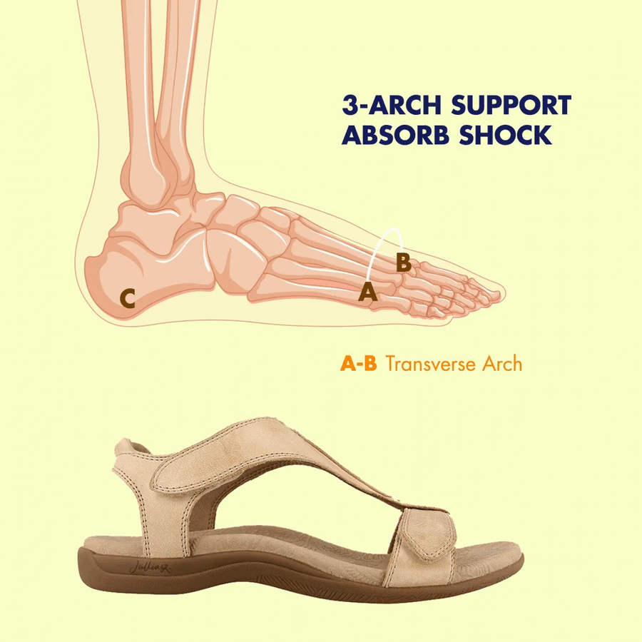 Our 3 - Arch - Support Design Makes Sure Your Weight Is Evenly Distributed Across The Toes, Arch & Ball Of Your Feet.  Simply, slip them on and snug your feet in place around the toe clasp for enhanced support.